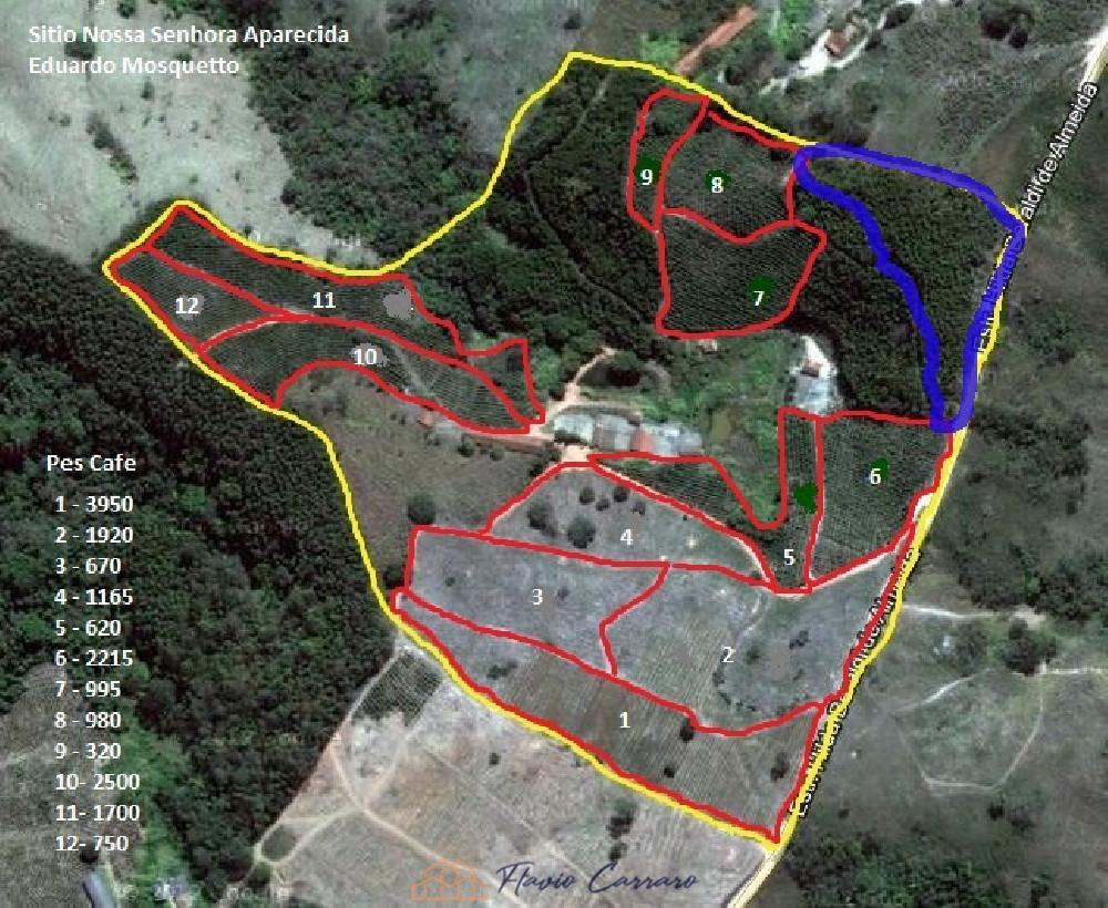 SITIO COM 6 ALQUEIRES, 20 MIL PÉS DE CAFÉ, 5 MIL PÉS DE MOGNO AFRICANO, 20 MIL PÉS DE EUCALIPTO, 5 NASCENTES, 3 CASAS DE COLONO, TULHA, 1000 MTS DE TERREIRO E 2 LAGOS.